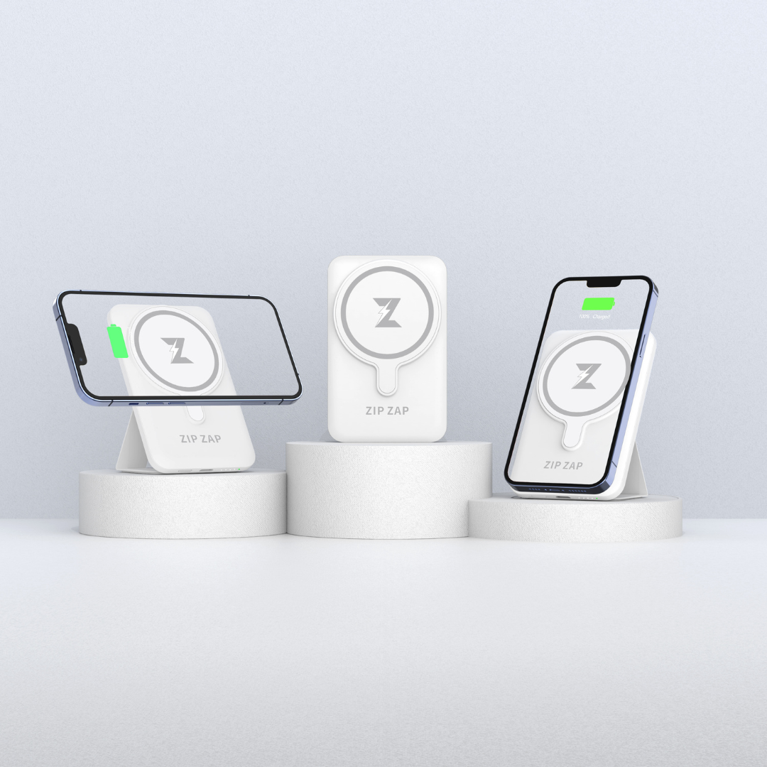 Building on the success of our Zip Zap Cableless Portable Charger, Bailey dedicated 8 months behind the scenes to develop his next major innovation: the Zap Pad. This cutting-edge magnetic power bank boasts a unique built-in stand, allowing you to charge your phone upright on any flat surface or in video mode while simultaneously powering up. With its revolutionary design, the Zap Pad was set to redefine convenience and functionality in portable charging on the go.