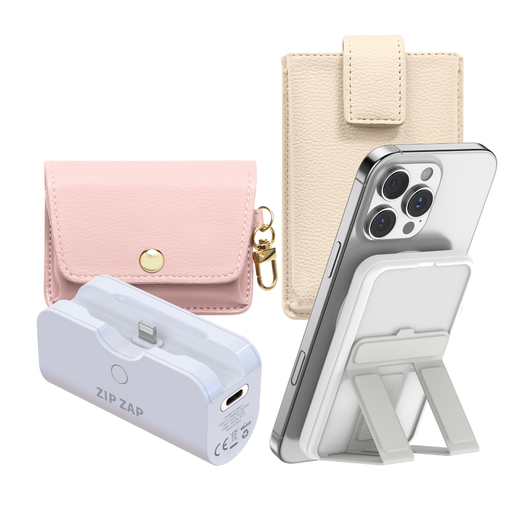 The Zip & Zap Pack is the ultimate power duo with 1x Zip Zap Plus (Lightning or USB-C) and 1x Zap Pad Wireless Magnetic Charger to keep all your devices charged.
